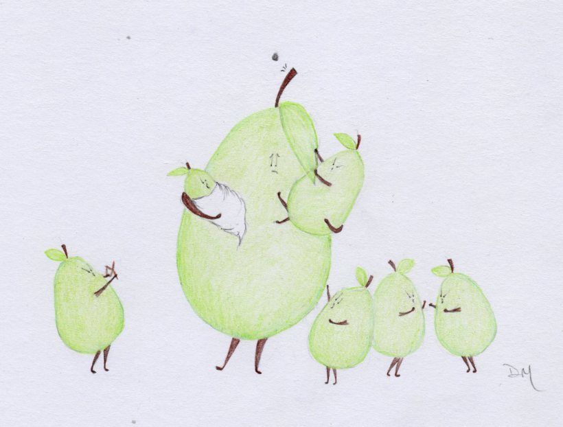 Poor pear! Not made for raising young. They young are such cute brats though. Human brats are not cute like that.