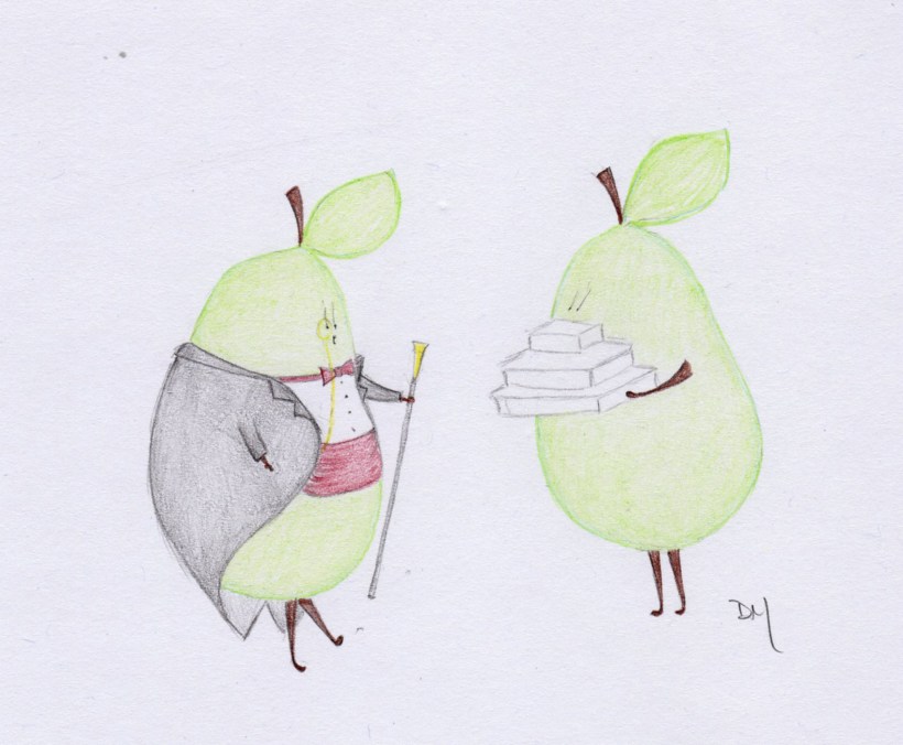 Love it. I wanted to see this dapper pear getting up to something, and I couldn’t ask for something better than shopping!