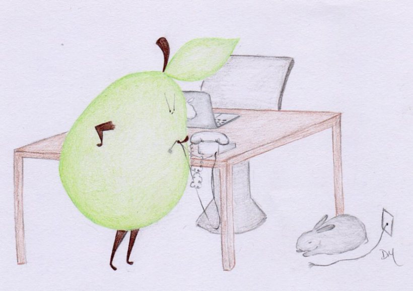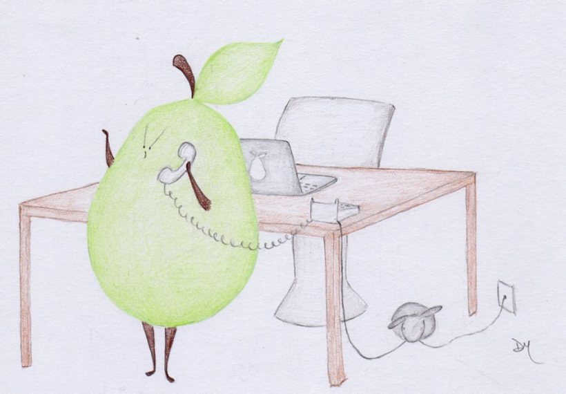 Angry Pear vs. Tech Support – Part 3 July 29, 2011 by angriestpear 2 Comments Click to read part 1 and part 2 Angry Pear had been waiting on hold for quite a long time. “Finally!” “Hello?” The End Share this: Click to share on Facebook (Opens in new window) Facebook Click to share on X (Opens in new window) X Click to email a link to a friend (Opens in new window) Email Click to share on Pinterest (Opens in new window) Pinterest Click to share on Reddit (Opens in new window) Reddit Click to share on Tumblr (Opens in new window) Tumblr Click to share on LinkedIn (Opens in new window) LinkedIn Like Loading... Related Author: angriestpear Poet, Knitter, Illustrator of Pears