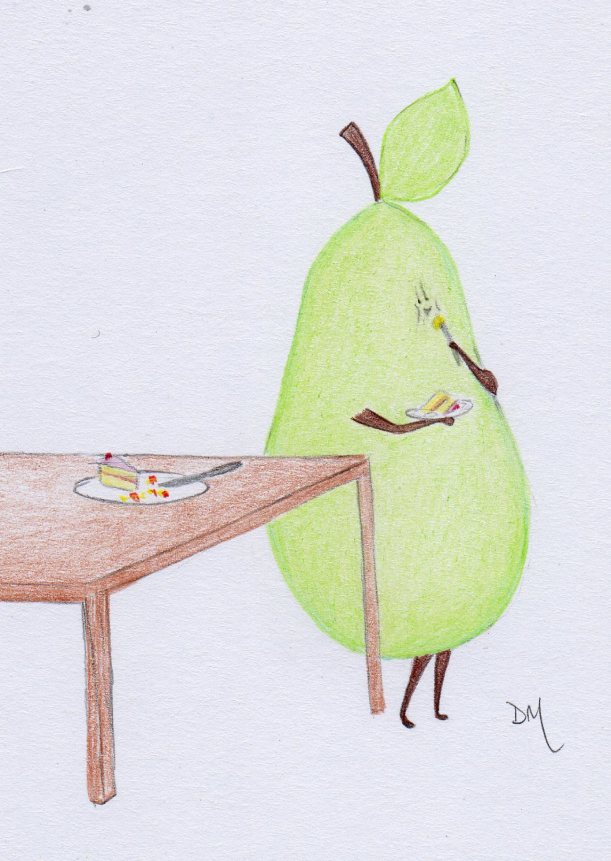 For my own birthday, I wish I could have a cupcake that is as proportionally large to me as this cupcake is to the pears.
