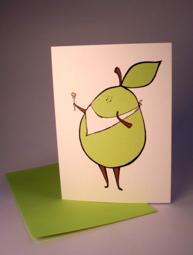 The idea for these cards came from one of Angry Pear’s readers. I can’t believe I didn’t think of it myself! They are available in sets of four in the Angry Pear Etsy shop.